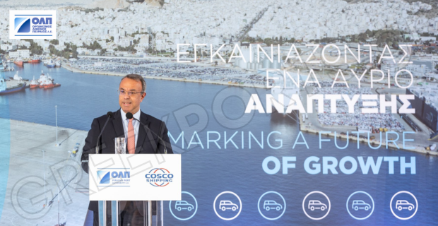 περισσότερα έργα αναβάθμισης των λιμενικών υποδομών της χώρας τους επόμενους μήνες και τα επόμενα χρόνια. Η πολιτική που εφαρμόζουμε -συνολικά ως Κυβέρνηση και ως ΤΑΙΠΕΔ-για την αξιοποίηση της Δημόσιας Περιουσίας στα μεγαλύτερα ελληνικά λιμάνια, μόνο οφέλη θα δημιουργήσει για την Ελλάδα. Και δεν είμαστε παρά μόνο στην αρχή!», καθώς και ο Υπουργός Υποδομών & Μεταφορών & κ. Χρήστος Σταϊκούρας, ο οποίος σημείωσε χαρακτηριστικά: «Ο Πειραιάς αποτελεί, σήμερα, ένα από τα πιο ταχέως αναπτυσσόμενα λιμάνια στον κόσμο. Με τον ΟΛΠ να προσθέτει οικονομική αξία στη χώρα ίση με το 1,56% του ΑΕΠ της. Έχοντας αυτή την αξία ως δεδομένη, αλλά και αξιοποιώντας την εμπειρία της εξέλιξης της συμβατικής σχέσης των μερών (Ελληνικό Δημόσιο, COSCO, ΤΑΙΠΕΔ) τα προηγούμενα χρόνια προχωρήσαμε το 2021, στην τροποποίηση της συμφωνίας Δημοσίου και ιδιώτη, προκειμένου να διασφαλιστεί η ομαλή εκτέλεσή της. Το αποτέλεσμα αυτής της νέας, λειτουργικής και ισορροπημένης σύμβασης είναι η υλοποίηση επενδύσεων, όπως αυτή που εγκαινιάζουμε σήμερα και αφορά την επέκταση του Σταθμού Διακίνησης Αυτοκινήτων, στον Λιμένα Ηρακλέους».